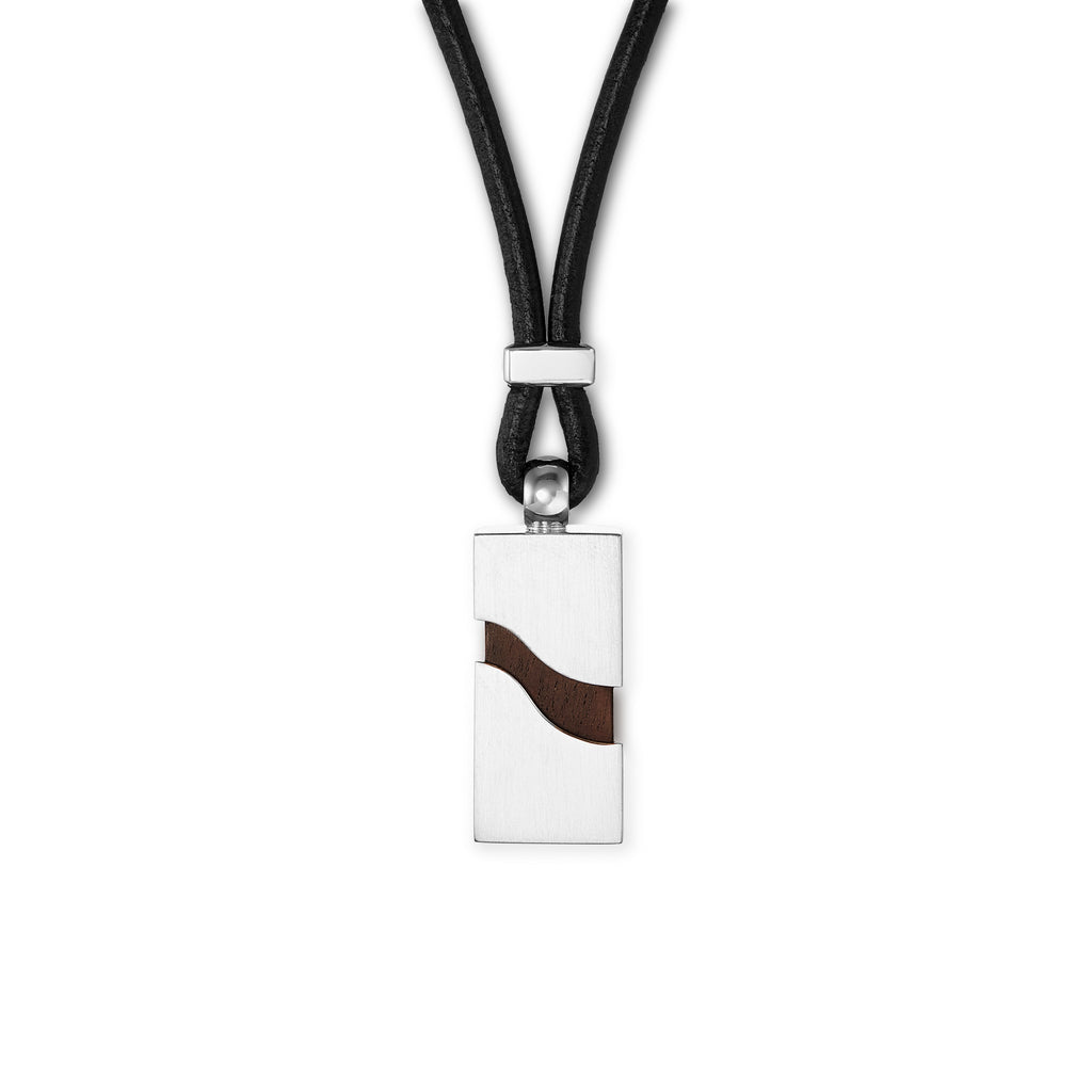 Silver and African Blackwood rectangular pendant with wavy detail