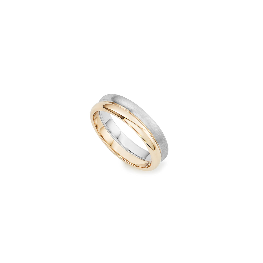 9k white and yellow gold double half round ring